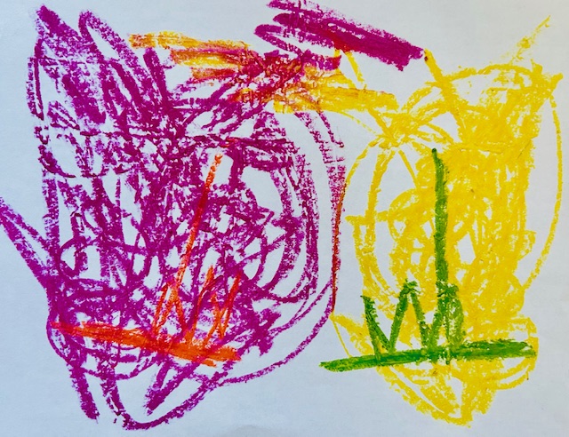 Find comfort in your space with familiar art materials. You are welcome to choose different colors/mediums for each hand. Please make sure the paper in front of you is secured and in a comfortable distance. You may close your eyes and move your arms (both of them at the same time) as you feel. You may continue as long as you please, there are no images to create and you may change colors. If there is a particular feeling or idea you feel safe to pursue, go for it.